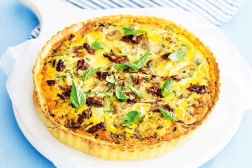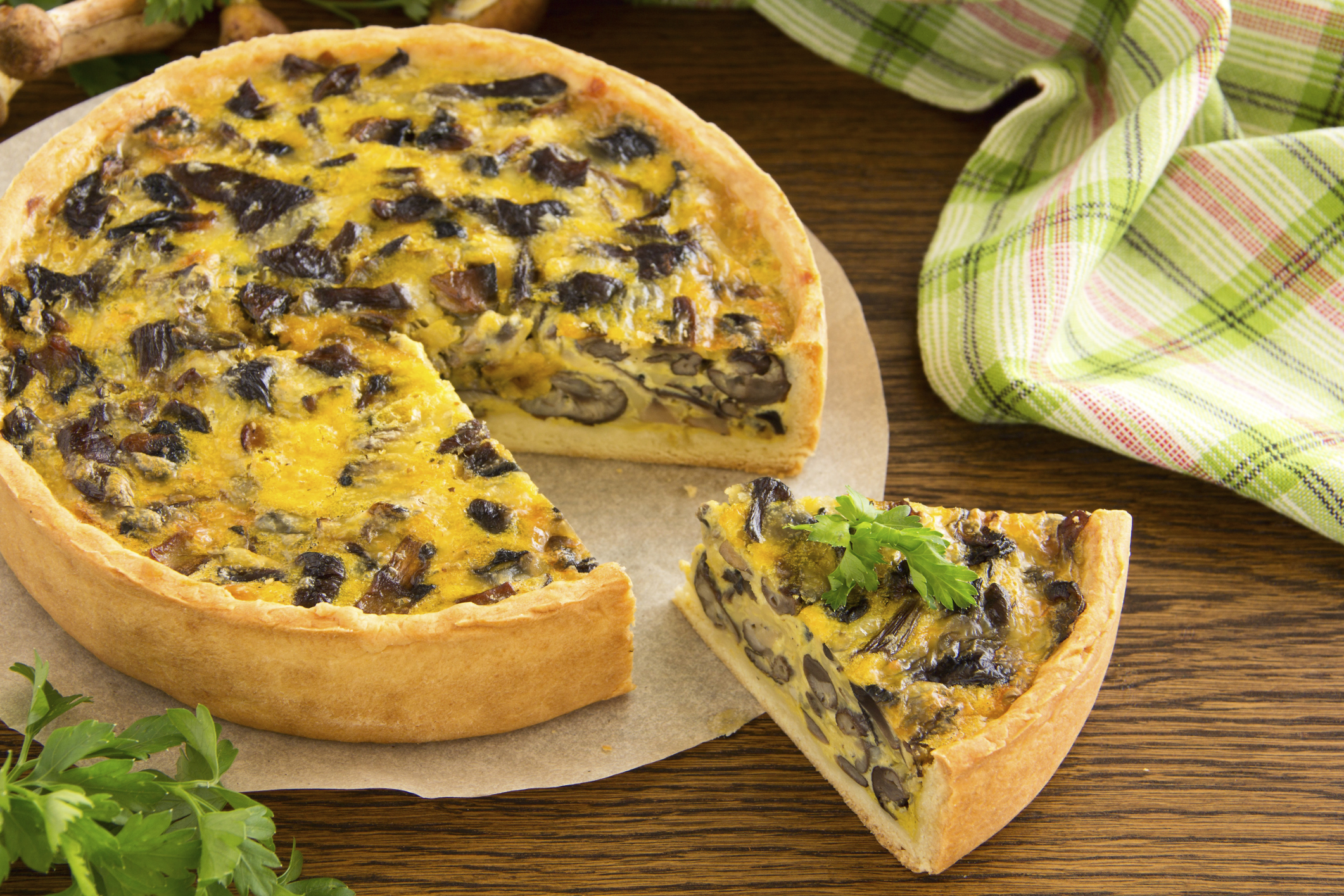 1- Comenzamos colocando la lámina de masa quebrada en un molde desmontable y adaptándola a su forma. 2- Ahora ponemos un papel de horno sobre la masa y colocamos unos garbanzos sobre toda la superficie para que la masa no suba al hornearse. Encendemos el horno a 180 grados con calor arriba y abajo, y cuando esté caliente metemos el molde durante 20 minutos. 3- Mientras se va haciendo, cocinaremos los champiñones y el pollo por separado. En una sartén pondremos a sofreír un ajo muy picadito y en que empiece a dorarse, añadiremos los champiñones cortados en trocitos. Cuando estén casi hechos, agregaremos el perejil picado. 4- Por otro lado, cocinaremos la pechuga de pollo cortada en trozos y sazonada en una sartén con un poco de aceite de oliva también. 5- Una vez estén hechas ambas cosas las juntaremos en una sartén y las cocinaremos durante un par de minutos. La mezcla líquida la haremos batiendo 2 huevos en un bol, añadiendo la nata, una pizca de sal y batiendo. En que esté batido agregaremos el queso rallado. 6- En que esté la masa hecha, la sacamos del horno, quitamos los garbanzos y el papel, y ponemos los champiñones y el pollo. 7- A continuación, con la ayuda de un cazo, pondremos la mezcla líquida procurando que quede igualmente repartida por todo. Luego volveremos a meter el quiche al horno a la misma temperatura durante 22 minutos aproximadamente. 8- Pasado ese tiempo, pinchamos el quiche con una aguja y si sale limpia ya podemos retirarlo del horno. En que se atempere un poco, lo desmoldamos y a comer.