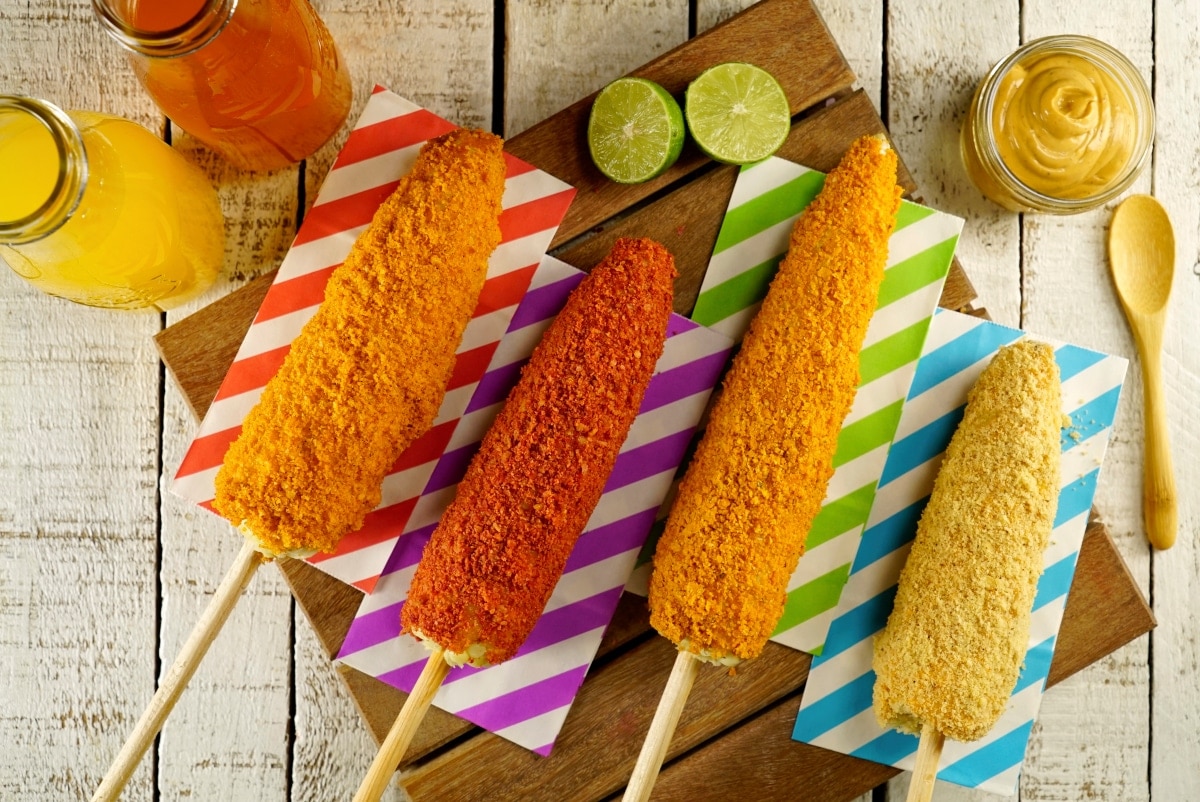 1- Calienta una ollita con el agua, agrega la sal y cocina los elotes hasta que estén suaves. Enfría y reserva. 2- En un bowl mezcla la mayonesa con la salsa picante hasta que se integre. Reserva. 3- Coloca las papas en una bolsa de plástico y con ayuda de una pala de madera tritura hasta que se forme un polvo fino. Reserva. 4- Sobre una tabla coloca los elotes e inserta un palito de madera, cubre con el limón y la mayonesa de chile, espolvorea con las papas trituradas de tu preferencia. 5- Sirve, comparte y disfruta.