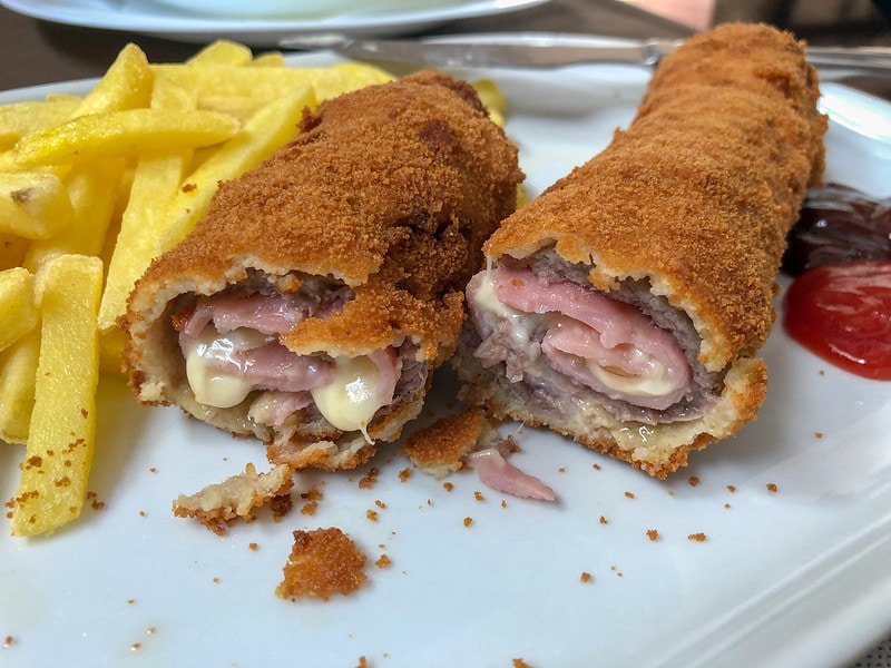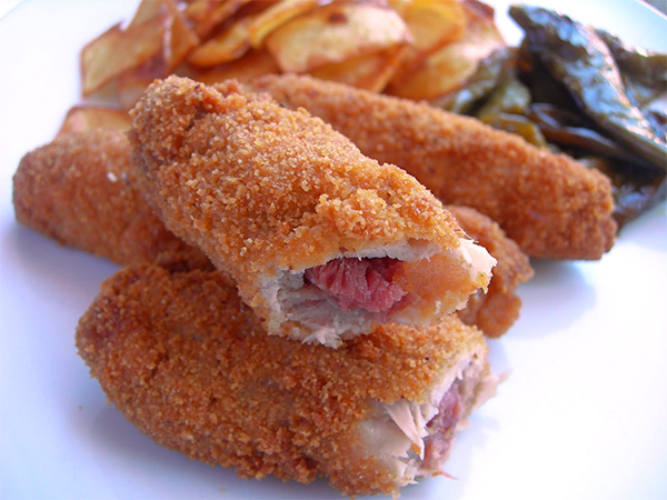 1- Espalmamos los filetes para conseguir que sean los más planos y anchos posibles. Los colocamos sobre una tabla, añadimos un poco de papel film sobre el que vayamos a estirar. Y con la ayuda de un rodillo, golpeamos el filete. 2- Colocamos sobre la tabla un filete, sobre él, colocamos las lonchas de queso y sobre ellas, la loncha de jamón. Y muy despacio enrollamos y tensando bien para que no se desmonte. 3- Envolvemos nuestros flamenquines en papel film bien prensando y los guardamos una media hora en la nevera para que queden compactos y no se nos abran al freírlos. 4- Transcurrido este tiempo los sacamos de la nevera y desenvolvemos y salpimentamos por ambos lados. Para rebozarlos añadiremos en un cuenco pan rallado, en otro un huevo batido y en un tercero harina. Pasamos nuestro flamenquín primero por el harina, después por el pan rallado y por último por el huevo. Asegurándonos que queden bien adheridos. 5- Echamos un poco de aceite en la sartén, los suficiente para haya un dedo de aceite, calentamos a fuego medio. Los rebozamos en harina, huevo y pan rallado. Y los llevamos a la sartén. 6- Controlamos con cuidado que no se quemen y los vamos dando la vuelta según se vayan dorando. Si tus flamenquines son muy gruesos tendrás que tenerlos más tiempo friendo para que se hagan bien por dentro. En nuestro caso, unos 5 minutos por cada lado. 7- Una vez listos los sacamos y dejamos escurrir en un plato con papel absorbente para que suelten la mayor parte de aceite. Y listos para comer! Consejos: También es importante que los filetes de cerdo sean bien finitos. Si el carnicero no los ha cortado todo lo finos que queremos, podemos optar por espalmarlos (aplanarlos) ligeramente con un rodillo. Es preferible que los productos sean lo más frescos posibles, así conseguiremos un rebozado bien crujiente, de lo contrario la carne y el jamón soltaran agua y nos estropearán el rebozado.