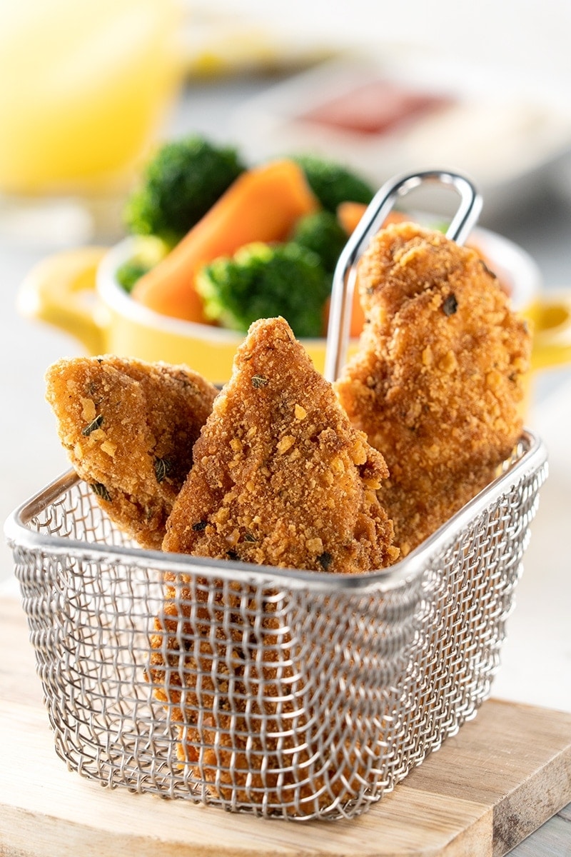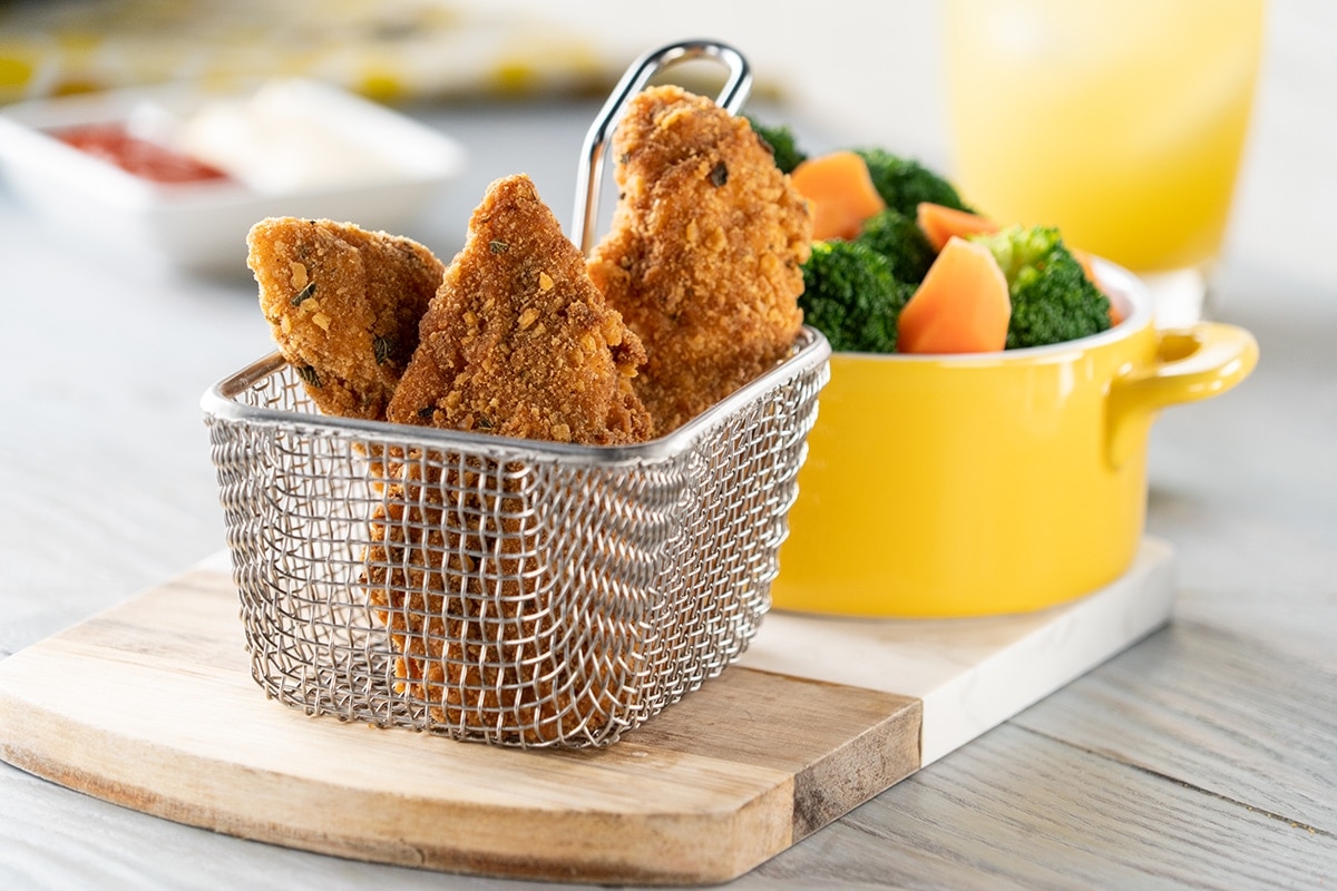 1- Sobre una tabla corta el pollo en tiras. Reserva. 2- En un bowl mezcla el pan molido, el orégano, el ajo en polvo y la paprika. 3- Sal pimenta el huevo y bate hasta integrar. 4- Sumerge el pollo en el huevo y empaniza por el pan molido perfectamente hasta cubrir por completo. 5- Fríe los dedos en aceite por alrededor de 5 minutos, o hasta que se vea doradito y esté cocido el pollo. Coloca en papel absorbente para retirar el exceso de grasa. 6- Sirve caliente y acompaña con verduras al vapor y salsa cátsup. Disfruta.